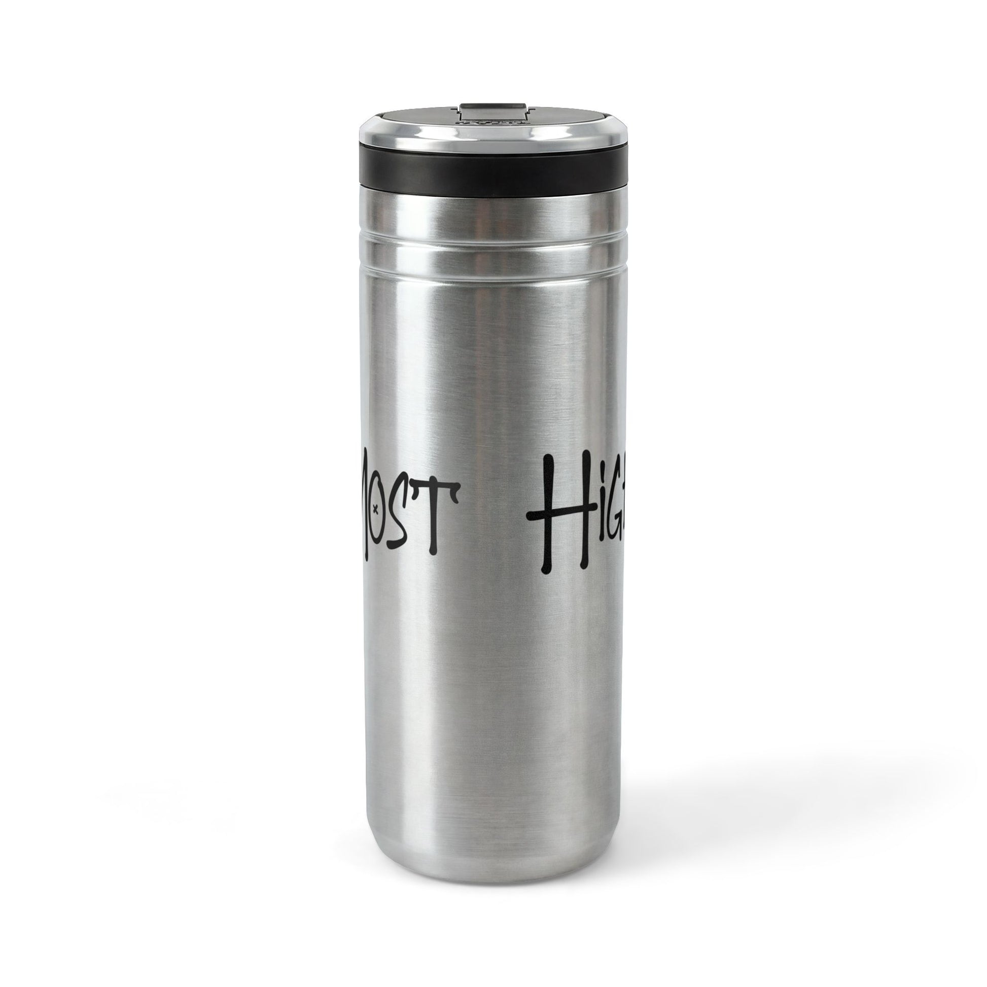 - Screw-on lid with flip-up straw for spill-resistant sipping